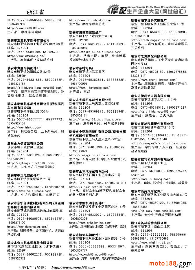 《摩托車與配件生產企業大全》打造行業信息的航母