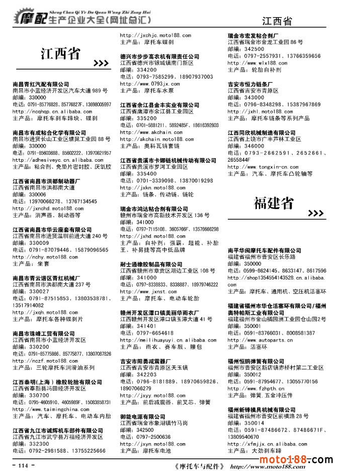 《摩托車與配件生產企業大全》打造行業信息的航母