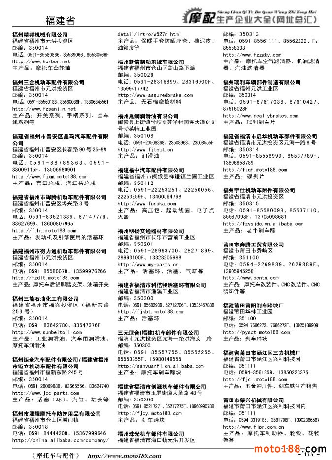《摩托車與配件生產企業大全》打造行業信息的航母