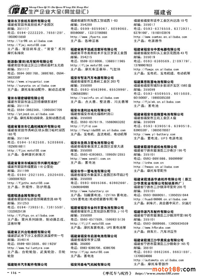 《摩托車與配件生產(chǎn)企業(yè)大全》打造行業(yè)信息的航母