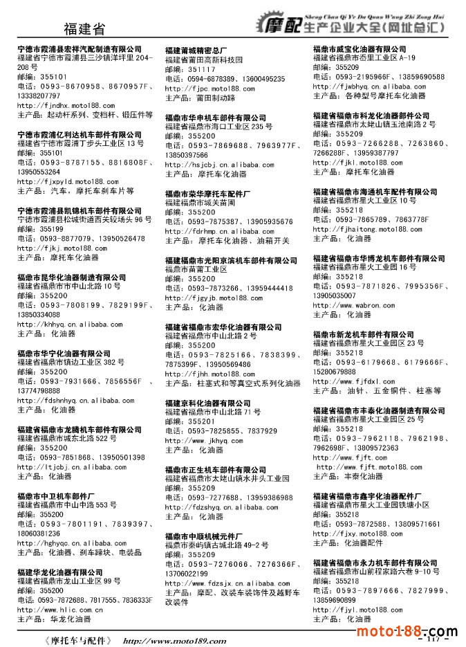 《摩托車與配件生產企業大全》打造行業信息的航母