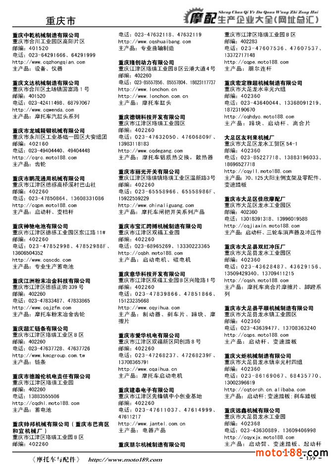 《摩托車與配件生產企業大全》打造行業信息的航母