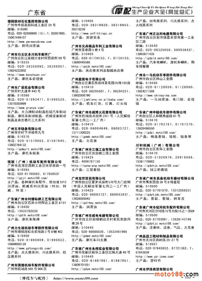 《摩托車與配件生產企業大全》打造行業信息的航母
