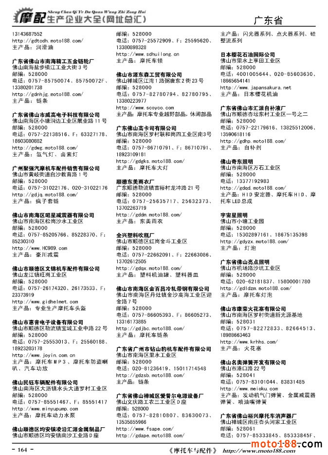 《摩托車與配件生產企業大全》打造行業信息的航母