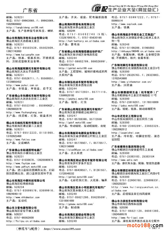 《摩托車與配件生產企業大全》打造行業信息的航母