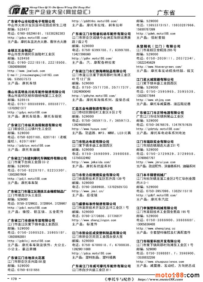 《摩托車與配件生產企業大全》打造行業信息的航母