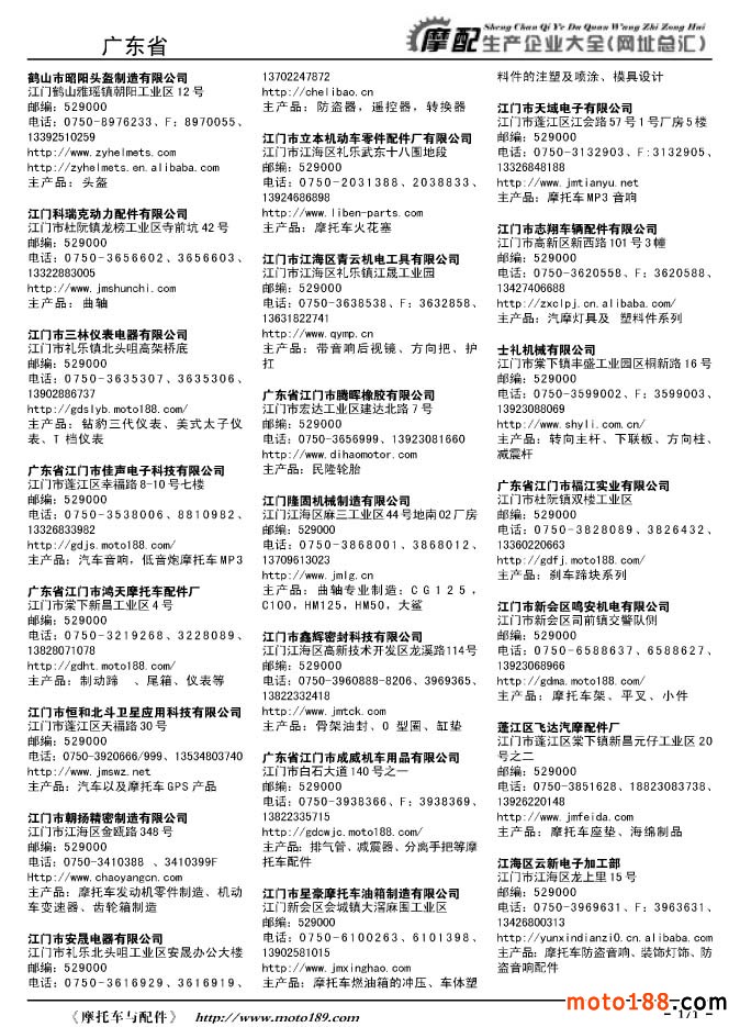 《摩托車與配件生產(chǎn)企業(yè)大全》打造行業(yè)信息的航母