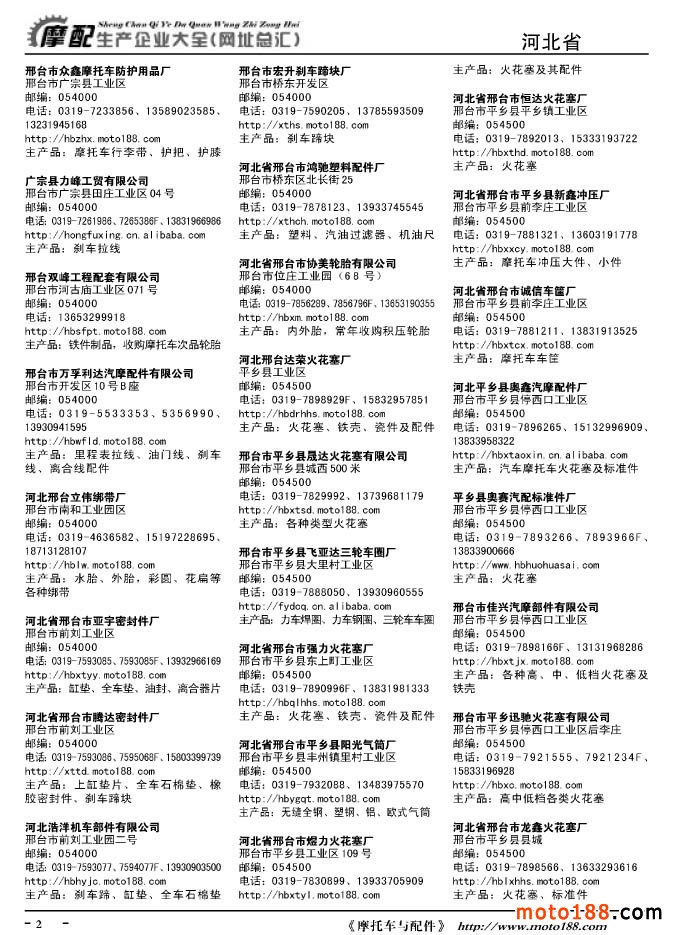 《摩托車與配件生產企業大全》打造行業信息的航母