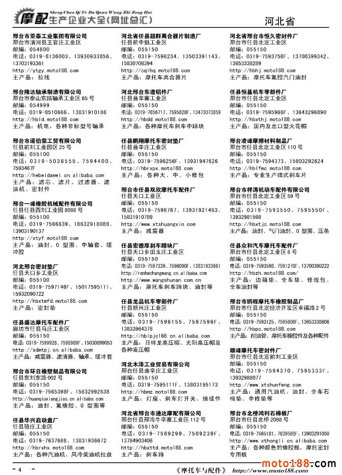《摩托車與配件生產企業大全》打造行業信息的航母