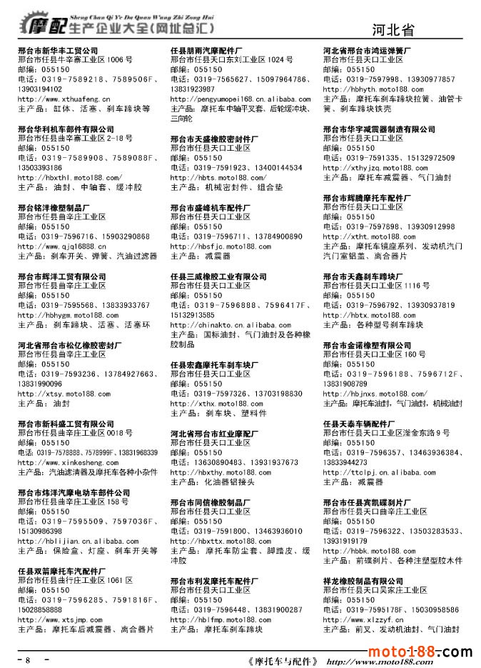 《摩托車與配件生產企業大全》打造行業信息的航母