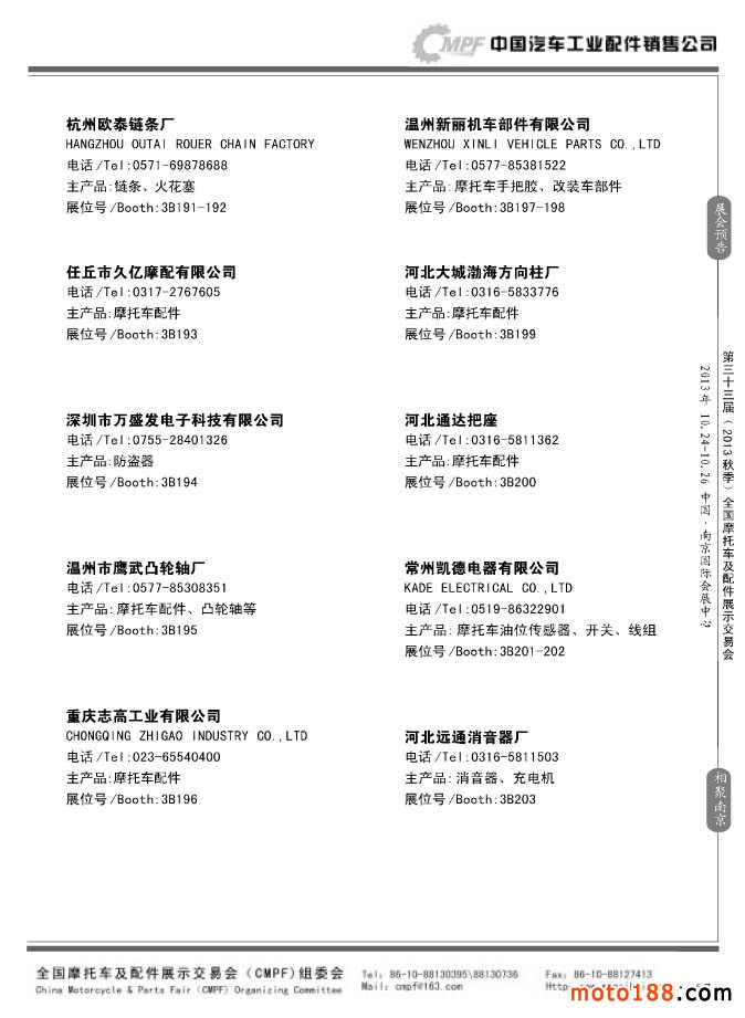 第33屆春季(濟南)全國摩托車及配件展示交易會參展企業名錄