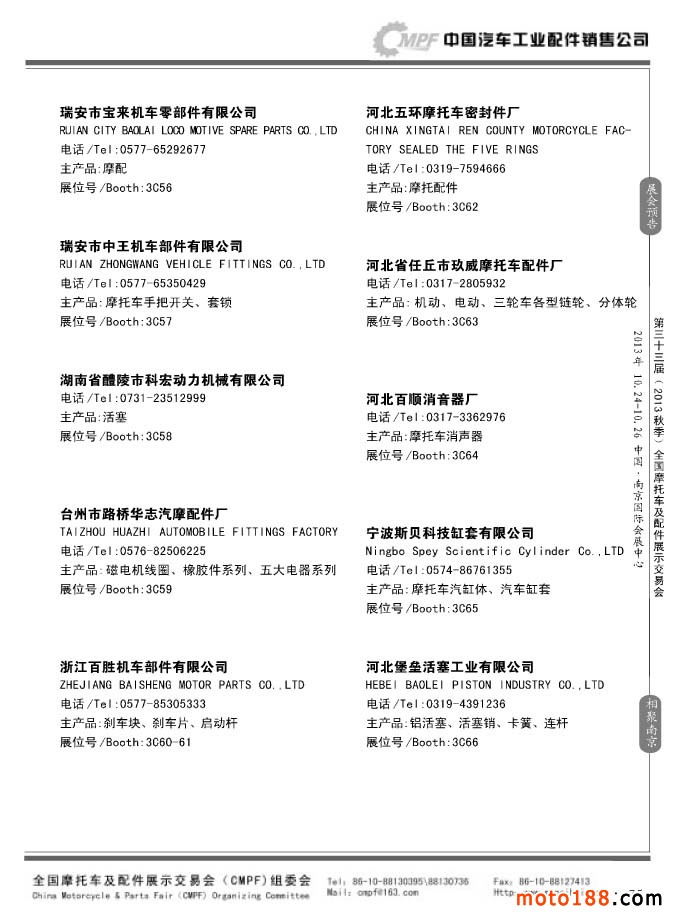 第33屆春季(濟南)全國摩托車及配件展示交易會參展企業名錄
