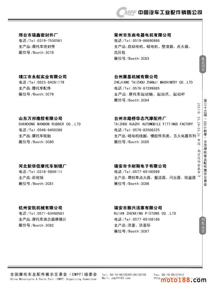 第33屆春季(濟(jì)南)全國(guó)摩托車及配件展示交易會(huì)參展企業(yè)名錄