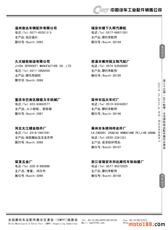 第33屆春季(濟南)全國摩托車及配件展示交易會參展企業(yè)名錄