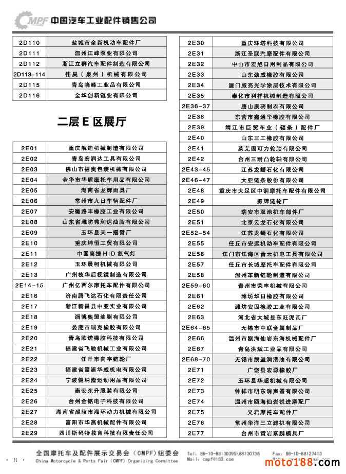 第33屆春季(濟南)全國摩托車及配件展示交易會參展單位名錄