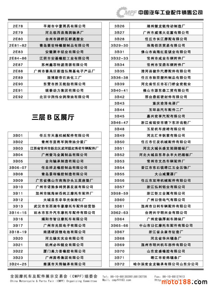 第33屆春季(濟南)全國摩托車及配件展示交易會參展單位名錄