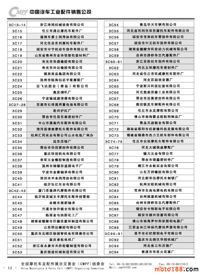 第33屆春季(濟南)全國摩托車及配件展示交易會參展單位名錄