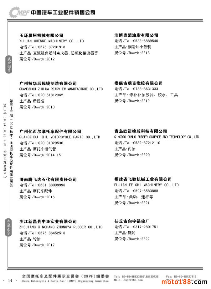 第33屆春季(濟南)全國摩托車及配件展示交易會參展企業(yè)名錄