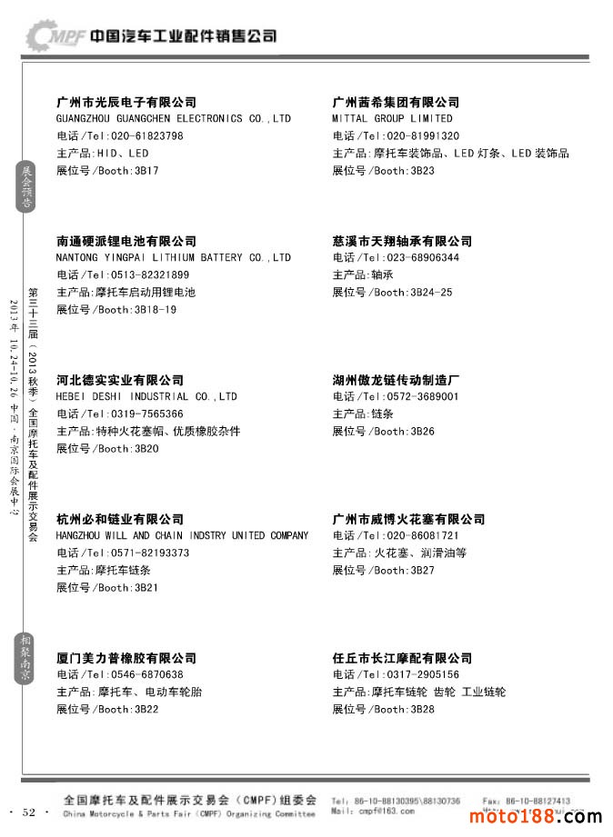 第33屆春季(濟南)全國摩托車及配件展示交易會參展企業名錄