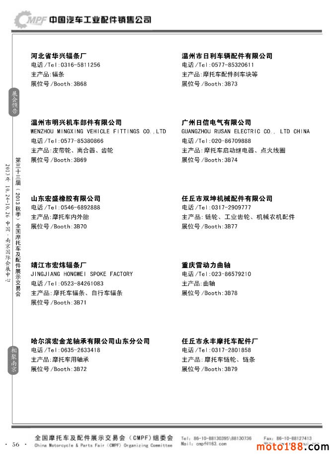 第33屆春季(濟南)全國摩托車及配件展示交易會參展企業名錄