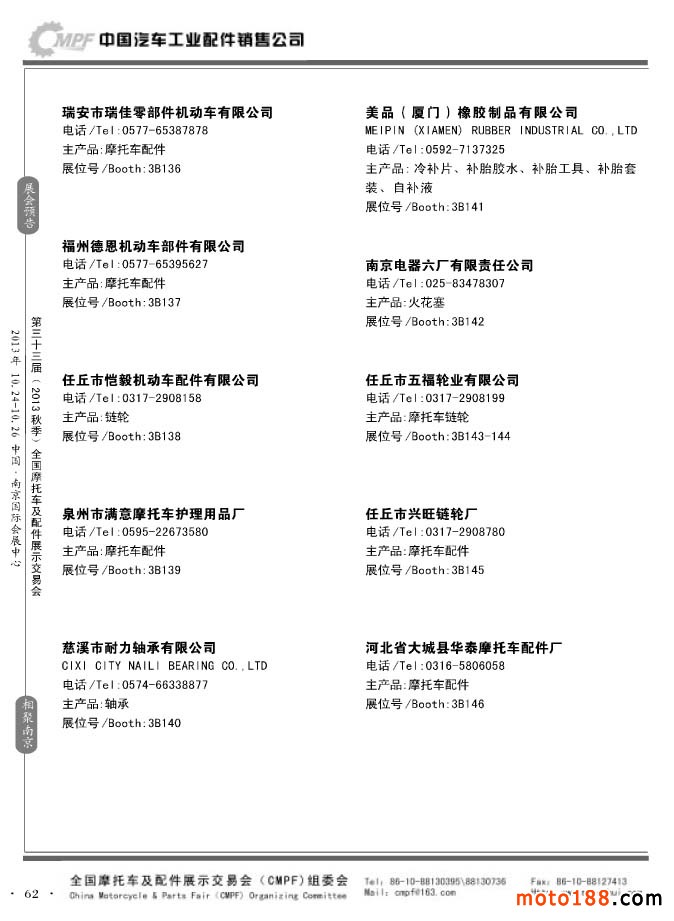 第33屆春季(濟南)全國摩托車及配件展示交易會參展企業名錄