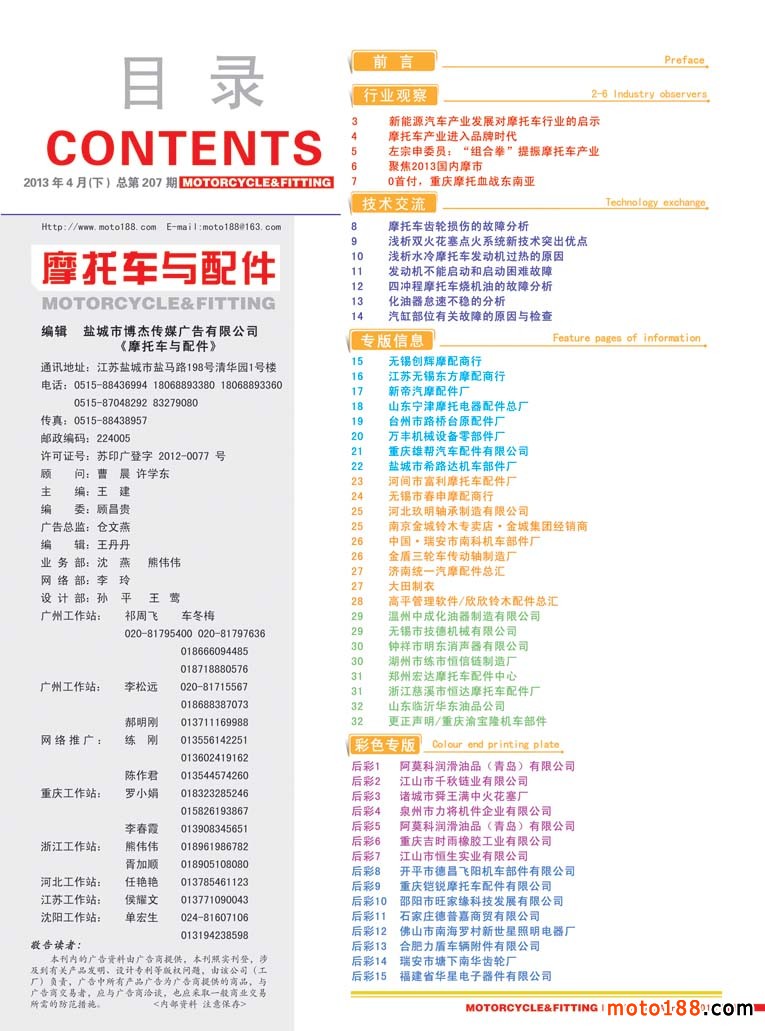 下半年我們的工作依然十分繁忙,除了日常的出刊,網(wǎng)站建設和維護外,我們將對《中國摩托車配件市場指南》進行第二次升級。這次升級版距上一個版本已經(jīng)三年了,三年來摩配市場變化很大,尤其在經(jīng)濟發(fā)達地區(qū),配合下半年在南京的全國摩配會,我們將從華東地區(qū)市場入手,首先升級華東版五省一市二十五個市場。華東地區(qū)如上海市場,以前的宜川摩配城已經(jīng)一分為二了。我們這次升級將緊貼市場,所有信息采集都在全國摩配會之后,也就是五月開始。華東地區(qū)經(jīng)銷商,尤其是不在全國摩配市場的,希望你們能積極配合,提供你們的資料,在下一本書中都能免費刊登出來。本次升級將華東地區(qū)的江西省并入到中南地區(qū),因為江西省和湖南、湖北等省關聯(lián)度更大。
