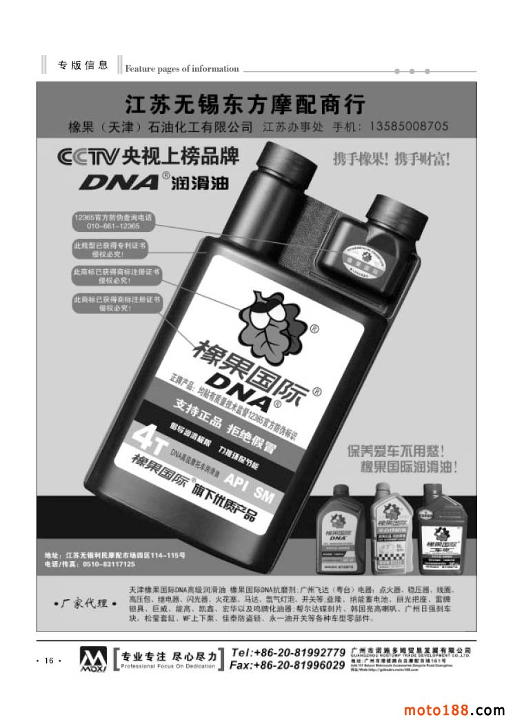《全國摩配市場指南》經過上一次版本的努力已形成一定的品牌和影響力,已是行業廣告的有效載體,目標客戶更加直接,可以說是點對點,因而需要開拓華東地區市場的廠家在書中做宣傳,效果會更加明顯。本次升級版除在南京全摩會首發,還將上門送書給華東市場的所有客戶。會期繁忙,贅言不述。