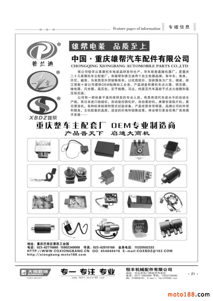 這次會上力推的是我們《中國摩托車配件生產企業大全(網址總匯)》第十一次的升級版本,這次升級版時間跨度為三年。這三年行業大調整,在書中也得到了體現。這次升級版最主要的亮點是配件制造業網址大匯總,通過本書可以查到你所需要瀏覽的網站,你能通過企業網站了解到企業更多的信息,這是我們將目錄數據庫信息和網絡信息對接的嘗試,傳統和現代互為補充。今后這項工作還要不斷的完善,尤其是我們moto188的網站,力爭擴大網站的服務功能。確保對行業信息的快速處理,還要力求信息準確,有一定的公信力。