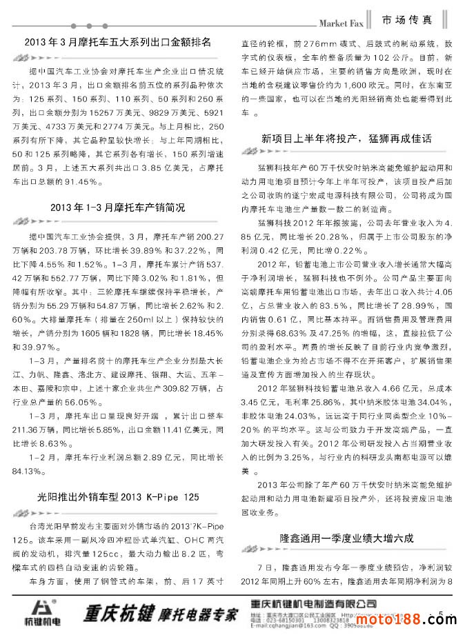 目前行業(yè)只有我們是碩果僅存的媒體,全國有七十幾個大大小小的集散市場,和分散在各地市、縣、鎮(zhèn)的幾萬家經(jīng)營散戶。姑且不算國外市場,就國內(nèi)摩配行業(yè)而言也算是。經(jīng)過這么多年的調(diào)整,都先后轉(zhuǎn)向了,如果一年出十二期雜志,對于整個摩配行業(yè)來說確實是不夠的:周期長、時效性慢,不符合未來市場的需要。當(dāng)然,這需要一個適應(yīng)的過程,我們現(xiàn)在決定冬夏季各縮一期,讓節(jié)奏適應(yīng)市場。這兩年來我們雜志每年都有一些調(diào)整,來適應(yīng)市場的變化。不變是相對的,變是永恒的,尤其像《摩托車與配件》在上升和發(fā)展時期,更是在探索中前進,在前進中發(fā)展。那些倒下的媒體就是因為缺少創(chuàng)新探索精神,墨守成規(guī),與社會發(fā)展趨勢漸行漸遠而被時代所淘汰。