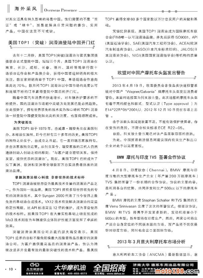 目前行業只有我們是碩果僅存的媒體,全國有七十幾個大大小小的集散市場,和分散在各地市、縣、鎮的幾萬家經營散戶。姑且不算國外市場,就國內摩配行業而言也算是。經過這么多年的調整,都先后轉向了,如果一年出十二期雜志,對于整個摩配行業來說確實是不夠的:周期長、時效性慢,不符合未來市場的需要。當然,這需要一個適應的過程,我們現在決定冬夏季各縮一期,讓節奏適應市場。這兩年來我們雜志每年都有一些調整,來適應市場的變化。不變是相對的,變是永恒的,尤其像《摩托車與配件》在上升和發展時期,更是在探索中前進,在前進中發展。那些倒下的媒體就是因為缺少創新探索精神,墨守成規,與社會發展趨勢漸行漸遠而被時代所淘汰。