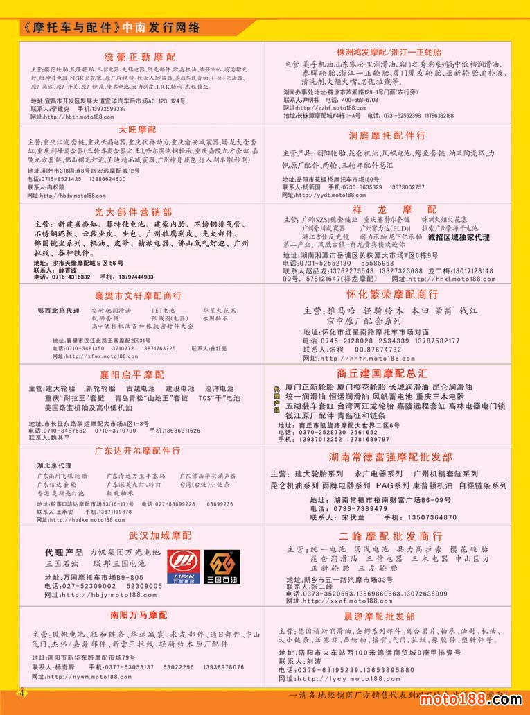 目前行業只有我們是碩果僅存的媒體,全國有七十幾個大大小小的集散市場,和分散在各地市、縣、鎮的幾萬家經營散戶。姑且不算國外市場,就國內摩配行業而言也算是。經過這么多年的調整,都先后轉向了,如果一年出十二期雜志,對于整個摩配行業來說確實是不夠的:周期長、時效性慢,不符合未來市場的需要。當然,這需要一個適應的過程,我們現在決定冬夏季各縮一期,讓節奏適應市場。這兩年來我們雜志每年都有一些調整,來適應市場的變化。不變是相對的,變是永恒的,尤其像《摩托車與配件》在上升和發展時期,更是在探索中前進,在前進中發展。那些倒下的媒體就是因為缺少創新探索精神,墨守成規,與社會發展趨勢漸行漸遠而被時代所淘汰。