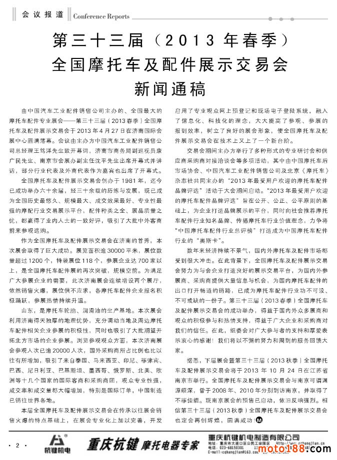 2 第三十三屆 (2013春季)全國摩托車及配件展示交易會新聞通稿