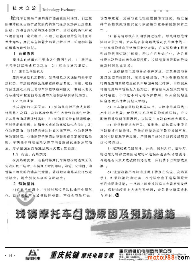 14 淺談摩托車自燃原因及預(yù)防措施
