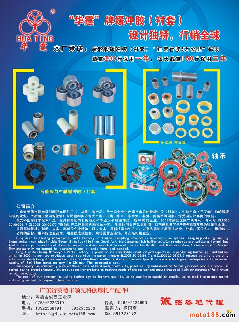 在這個淡季里,我們還將去西北和東北送書、送報上萬,走訪調(diào)研這些地區(qū)的市場。再次強調(diào),我們送的書是今年上半年在濟南全摩會首發(fā)的新版《中國摩托車配件生產(chǎn)企業(yè)大全》,送的報紙是《摩托車與配件外貿(mào)報》。我們的雜志還是由全國各發(fā)行點直接發(fā)放給市場上的經(jīng)營商戶。目前《大全》已完成在山東、河北、廣東和重慶等省市的主要市場的發(fā)行。今年年底之前完成對全國市場的投放。