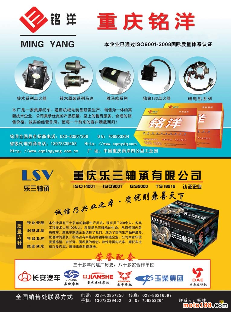 在這個淡季里,我們還將去西北和東北送書、送報上萬,走訪調研這些地區的市場。再次強調,我們送的書是今年上半年在濟南全摩會首發的新版《中國摩托車配件生產企業大全》,送的報紙是《摩托車與配件外貿報》。我們的雜志還是由全國各發行點直接發放給市場上的經營商戶。目前《大全》已完成在山東、河北、廣東和重慶等省市的主要市場的發行。今年年底之前完成對全國市場的投放。