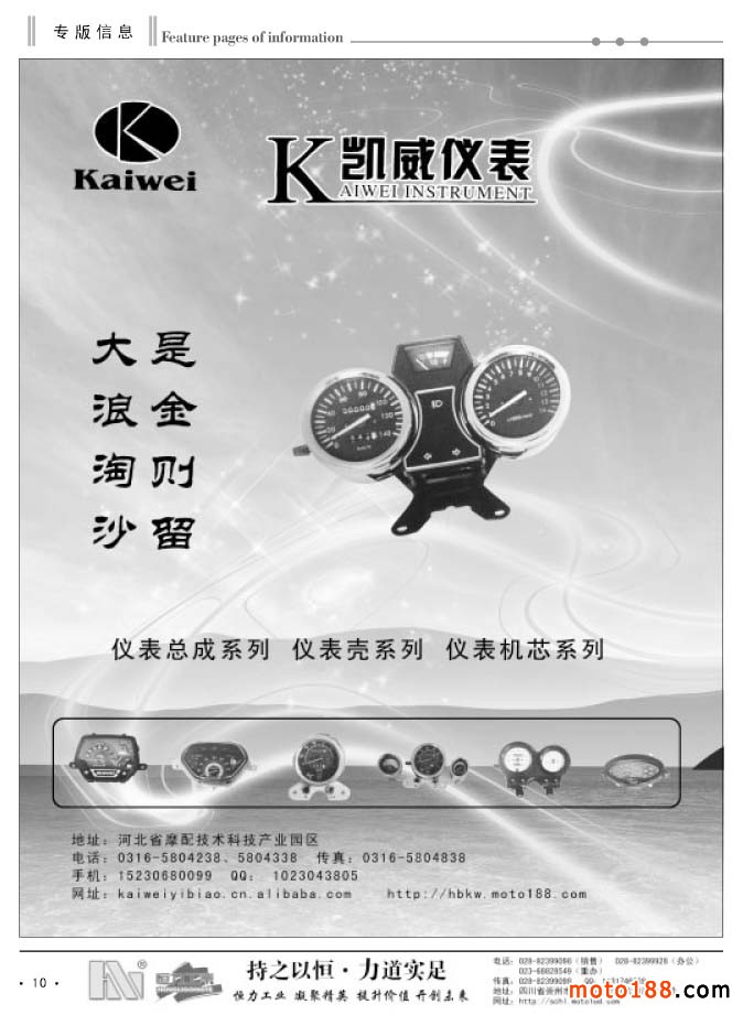 經過幾次改刊后的發行情況來看,我們這種根據市場變化靈活出刊的形式逐步被企業所認可。在發行上我們也是沒有打折扣,月出刊兩期后,黑白的內容要比過去豐富得多,可讀性也在增強。六月變單期后,我們另增加8頁黑白的文字信息內容,黑白每期為40頁。由于北方市場和南方市場淡旺季同期相反,所以在南方的淡季里,我們雜志在北方市場的發行數量將增加。不管南北市場淡旺不同,對我們來說,我們仍將一如既往地做好我們的工作。從今年6月份開始,我們工作人員將分別去福建、浙江、安徽和江西四省,走訪調研這四省的摩配市場,并將派送上萬份《外貿報》和工具書《配件生產企業大全》。同時,我們還將收集市場的最新資料,為下半年的《華東市場指南》做出書的準備工作。目前這項工作進展順利,廣告征集也在穩步進行。完成這些省份的調研工作,我們的信息采集工作也就到了收官階段。工作進展快的話,我們就會提前結束這本書的編排。在10月24日的南京全摩會上,大家就可以看到這本書了。