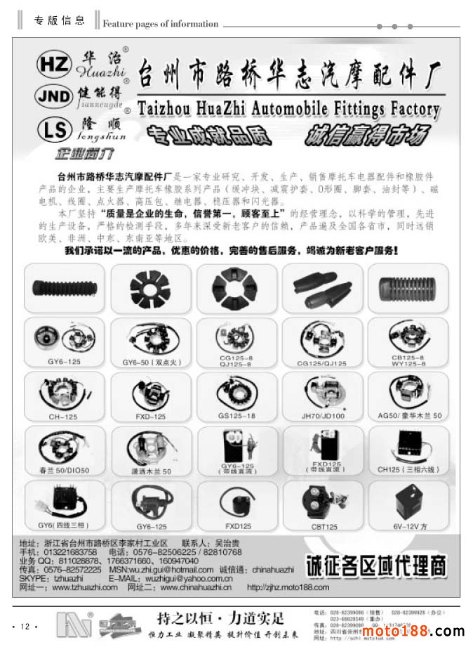經過幾次改刊后的發行情況來看,我們這種根據市場變化靈活出刊的形式逐步被企業所認可。在發行上我們也是沒有打折扣,月出刊兩期后,黑白的內容要比過去豐富得多,可讀性也在增強。六月變單期后,我們另增加8頁黑白的文字信息內容,黑白每期為40頁。由于北方市場和南方市場淡旺季同期相反,所以在南方的淡季里,我們雜志在北方市場的發行數量將增加。不管南北市場淡旺不同,對我們來說,我們仍將一如既往地做好我們的工作。從今年6月份開始,我們工作人員將分別去福建、浙江、安徽和江西四省,走訪調研這四省的摩配市場,并將派送上萬份《外貿報》和工具書《配件生產企業大全》。同時,我們還將收集市場的最新資料,為下半年的《華東市場指南》做出書的準備工作。目前這項工作進展順利,廣告征集也在穩步進行。完成這些省份的調研工作,我們的信息采集工作也就到了收官階段。工作進展快的話,我們就會提前結束這本書的編排。在10月24日的南京全摩會上,大家就可以看到這本書了。