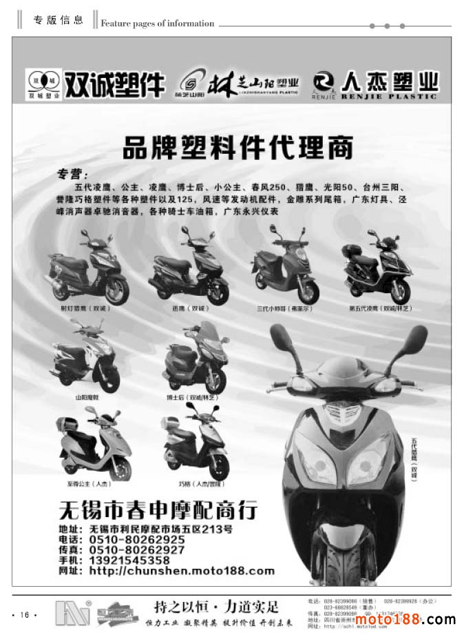 時(shí)節(jié)即將進(jìn)入盛夏了,南方的天氣也越來(lái)越熱,國(guó)內(nèi)的內(nèi)銷市場(chǎng),尤其是南方地區(qū)的市場(chǎng)將轉(zhuǎn)成淡季。根據(jù)我們今年的出刊計(jì)劃,我們從這個(gè)月也就是六月份開(kāi)始至八月份每月出一期雜志。本期雜志是在六月中旬出刊;7月雜志將在七月上旬出刊,同時(shí)在中旬還會(huì)出刊今年的第三期《摩托車與配件外貿(mào)報(bào)》即夏季版(十月出刊秋季版);八月初出刊8月版;八月底至九月初出刊9月上半期雜志,十月中下旬出刊9月下半期雜志。請(qǐng)大家注意我們的出刊日期,及時(shí) 到我們的發(fā)行點(diǎn)領(lǐng)取。我們也會(huì)在moto188網(wǎng)站的公告欄及時(shí)通知大家雜志發(fā)貨的具體時(shí)間。