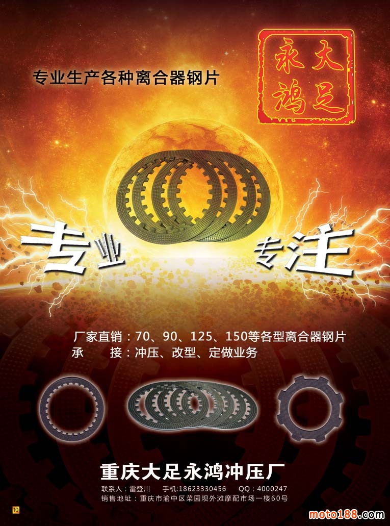在這個淡季里,我們還將去西北和東北送書、送報上萬,走訪調研這些地區的市場。再次強調,我們送的書是今年上半年在濟南全摩會首發的新版《中國摩托車配件生產企業大全》,送的報紙是《摩托車與配件外貿報》。我們的雜志還是由全國各發行點直接發放給市場上的經營商戶。目前《大全》已完成在山東、河北、廣東和重慶等省市的主要市場的發行。今年年底之前完成對全國市場的投放。