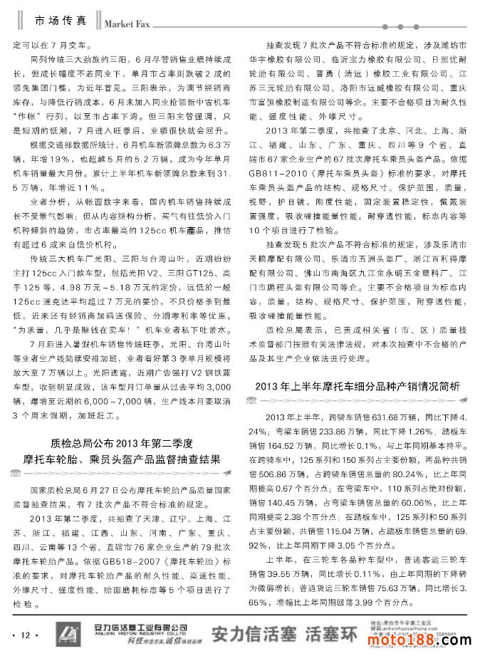 華東市場對我們來說總體感覺是:每況愈下,盡管這樣也有許多優秀的企業,優秀的商戶,他們在還堅持,在千方百計的拓展市場,既是為了生存和發展也是為了一項事業。在物欲橫流、人心浮燥的外部環境下,行業有這樣的守望者,行業也會生生不息、綿延不絕。隨著東部市場淡季的結束,他們也會進入到收獲期。假如你有疑問,那么在十月金秋南京的秋摩會上,你會感受到這份努力的果實,這份執著而帶來的回報。行業的總體盤子在不斷擴大,摩托車后市場的作為也越來越大,這是優勝劣汰的進化過程,進化的結果是強者越強,在困難時候能堅守的必定是未來的成功者。當然那些轉身離開者也未必都全是失敗者,會有新的商機靠他們去捕捉,只要勤勤懇懇、踏踏實實地努力,天道也會酬勤。
