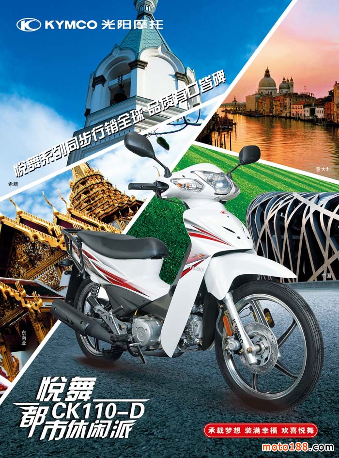 光陽本著 "Better than Best" 的企業(yè)宗旨,正式向全世界宣布,我們期望以提供KYMCO優(yōu)質(zhì)的動力商品與技術(shù)服務(wù)為使命,啟動人類的生活動力,讓擁有國際品牌的KYMCO帶領(lǐng)您進(jìn)入便利、安全、休閑、娛樂的動力世界。