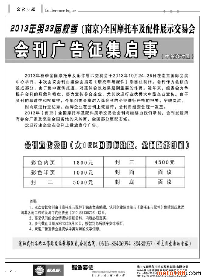 2 第33屆(2013秋季)全國摩配展交會(huì)會(huì)刊廣告征集啟事