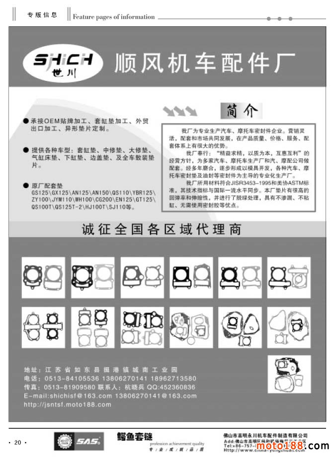 回想這幾年市場的變化,摩托車及配件制造業從造摩托車到部分轉為造電動車。這二年農用三輪摩托車的需求量較大,很快一部分企業轉產三輪車及配件。在通機行業,重慶國營和民營,尤其是民營企業發展神速,有的企業年產量達1-2百萬臺,而且還是以歐美等發達國家市場為主。這讓我們不得不佩服這些企業雖然在市場邊緣中生存,卻還做得風生水起。與通機制造業蒸蒸日上形成反差,通機國內市場才剛剛發育。我們利用去全國市場的機會,也順帶去了一下機電五金等市場。目前在全國還沒有形成完整成形的專業銷售市場,通機部件更是沒成氣候。這為我們摩配市場經營,注入了新的經營項目,豐富了摩配市場的內涵,這是一個新的藍海。這幾年摩托車配件經營利潤越來越薄,市場越來越殘酷,我們向行業提供這樣的信息,希望給企業能有所啟迪,在市場的邊緣開拓市場、發展市場、完善市場。通過這一期的嘗試,我們試水通機市場,以后我們會更加關注這個市場的變化,如能形成一定的國內市場,我們將完善我們的服務形式,用傳統紙媒和網媒來服務于這個市場。