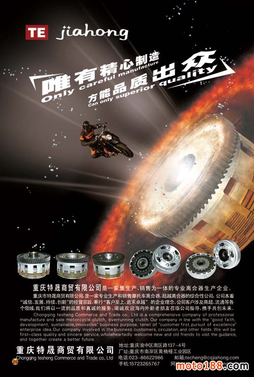 《中國摩托車配件市場指南》系列叢書,經過三年一個輪回,我們將對全系列叢書進行第二次的升級,這本書在今年下半年江蘇省會南京舉辦的三十三屆秋季全摩會正式首發。在這之前,我們先在第十二屆重慶國際博覽會會上發行,本書在部分華東市場先行投放,除了華東市場全覆蓋外,在廣州和重慶重要市場也由工作站人員送書上門,另外我們的m.zjsoxnet.com網站也將在首頁擺放一年,在網站上可以在線閱讀,也可以下載離線閱讀,不上網也可以脫機瀏覽。