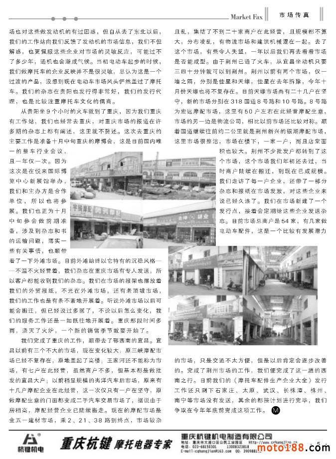 本次雜志因為要參加10月17-20日在重慶國際博覽中心舉辦的第十二屆中國國際摩托車博覽會,在這個展會上我們還將《中國摩托車配件華東市場指南》帶到會上發(fā)行,因而我們在過完中秋節(jié)后,工作就十分繁忙。為了能保證及時參展,我們都在趕點,這之中還包括國慶假日,印刷廠還要放假,江蘇到重慶的在途運輸時間等。為了兌現(xiàn)我們出版發(fā)行的承諾,我們也只有努力工作。