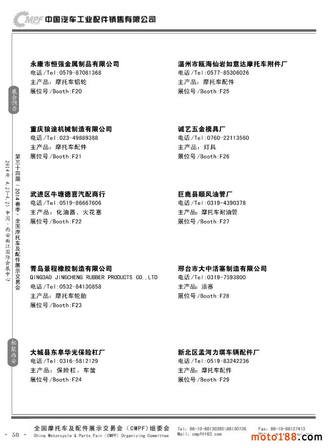 第33屆秋季(南京)全國(guó)摩托車及配件展示交易會(huì)參展企業(yè)名錄