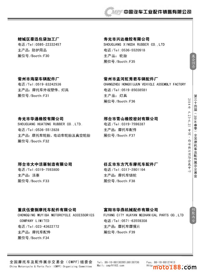 第33屆秋季(南京)全國摩托車及配件展示交易會參展企業名錄