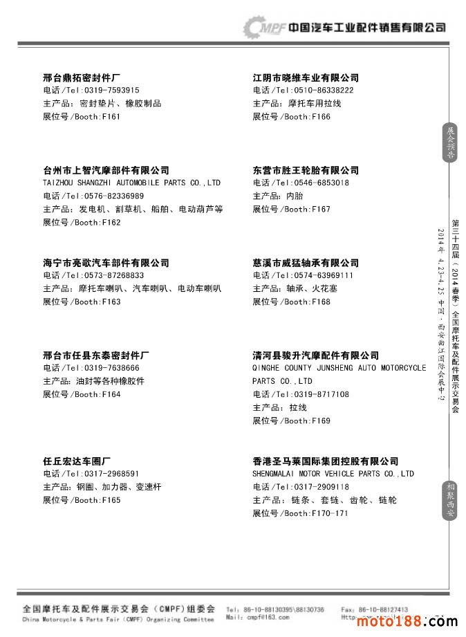 第33屆秋季(南京)全國摩托車及配件展示交易會參展企業名錄