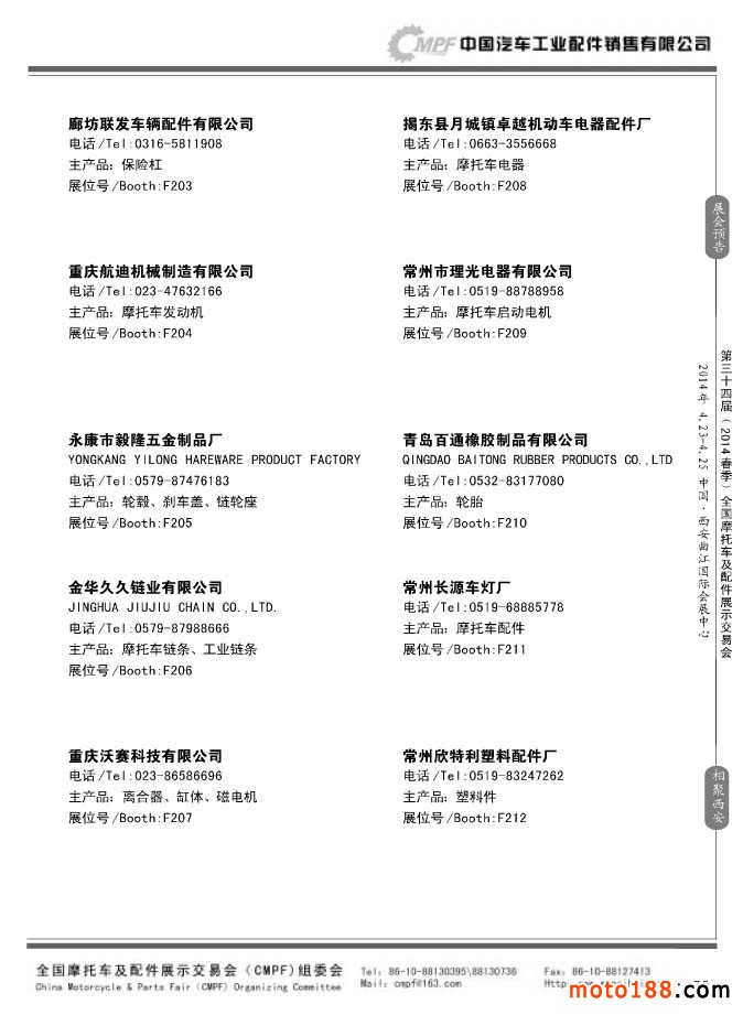 第33屆秋季(南京)全國摩托車及配件展示交易會參展企業名錄