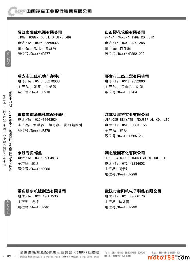 第33屆秋季(南京)全國摩托車及配件展示交易會參展企業名錄